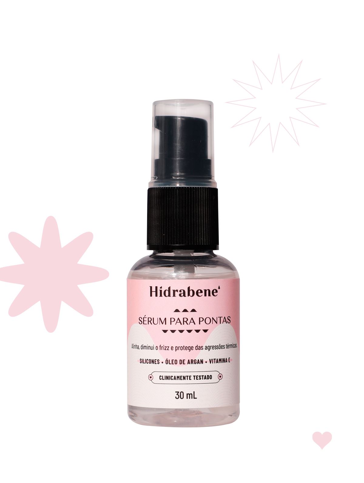 Fórmula de reparação inteligente, desenvolvida para alinhar e proteger os cabelos contra as agressões térmicas dos danos causados pelo secador e chapinha. Hidrabene Sérum para Pontas contém silicones que tratam os fios exatamente onde a cutícula está danificada, formando um filme uniforme, regenerador e protetor - deixando os cabelos nutridos, brilhosos e sem friz. Produto vegano, hipoalergênico, formulado de maneira a minimizar possível surgimento de alergia.